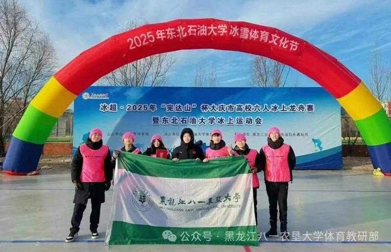 我校2025年12月14日参加由大庆市体育局举办,东北石油大学承办的2025年大庆市高校六人冰上龙舟赛100米直道赛在东北石油大学冰场上隆重举行,由来自6所高校的40余名运动员参加比赛,我校龙舟队共派出6名队员参加了此次比赛,赛场上来自于各所高校的运动员们摩拳擦掌为了第一名的宝座在赛场上挥洒青春的汗水。